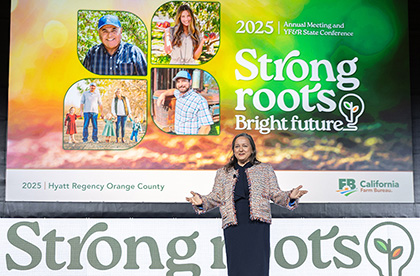 California Farm Bureau President Shannon Douglass applauded the organization’s principles and celebrated its accomplishments this year in an address delivered last week at the Farm Bureau’s 107th Annual Meeting in Anaheim. “Despite all the challenges we have in the world, all the challenges we have in agriculture, we still have a tremendously bright future,” Douglass said. “I believe that it’s because of Farm Bureau that the future of California agriculture looks bright.”